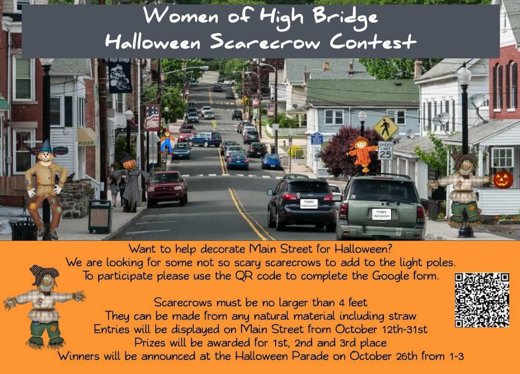 Women for High Bridge is currently holding its first ever Scarecrow Decorating Contest and you will see participants creative scarecrows lining Main Street. Be sure to take a walk down Main Street within the next week to see all the amazing scarecrows that have been creatively designed. Scarecrows will be on display from October 12-31 and will be judged by a panel of judges. Prizes will be awarded for 1st, 2nd, and 3rd place. Winners will be announced at the Halloween Parade/Party on Saturday, October 26.