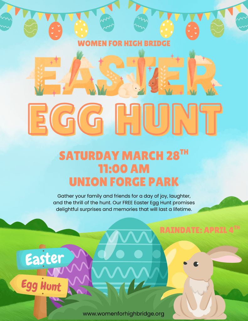 Join Women for High Bridge for our annual Easter Egg Hunt—a fun-filled morning celebrating spring, community, and smiles for kids of all ages!